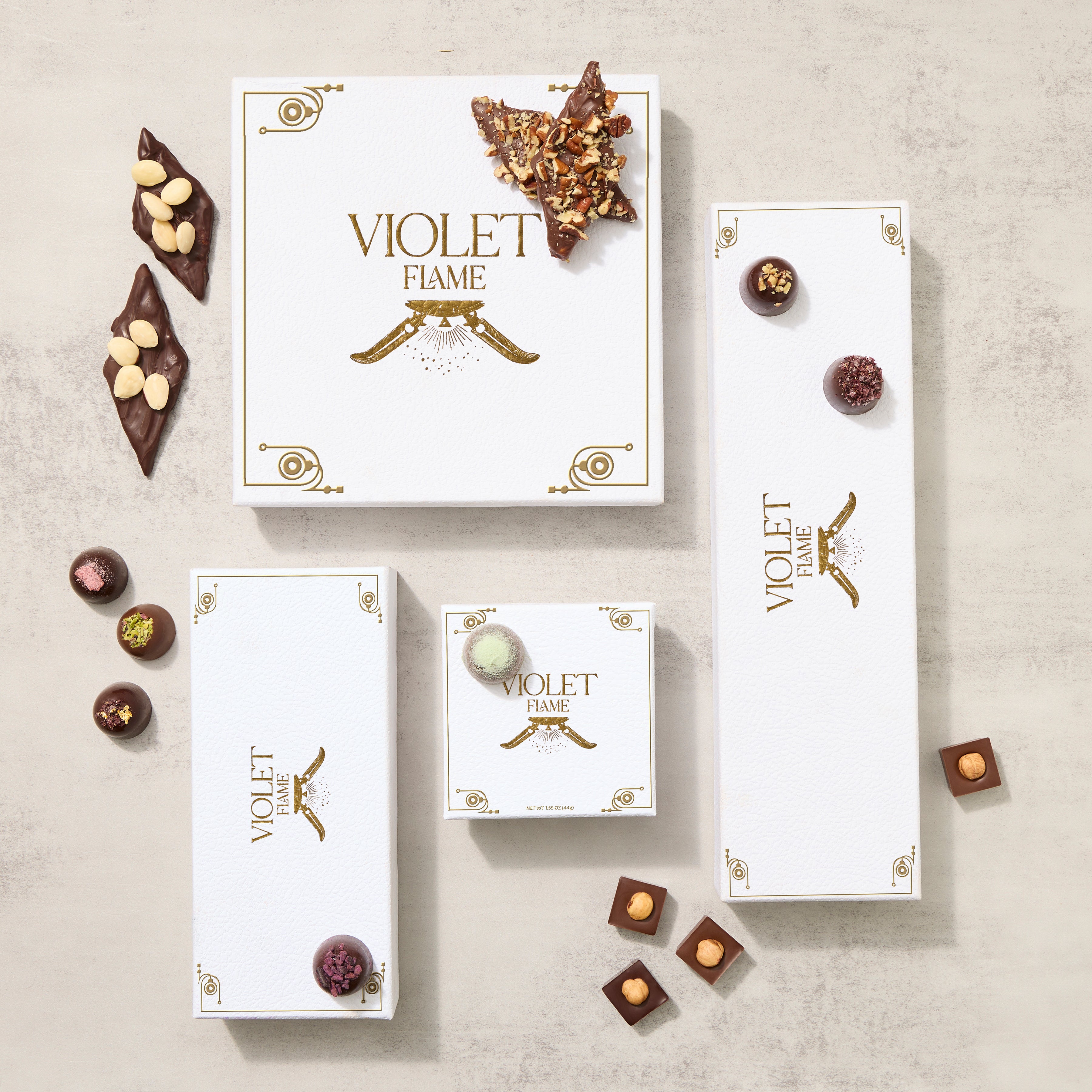 Violet Flame Chocolates are handmade confections meticulously crafted with rarified ingredients, botanicals and ancient elixirs. Chosen for their sensory richness and efficacy, nearly all of our ingredients are sourced from organic, biodynamic farms, certified for their authenticity in ancient traditional methods.